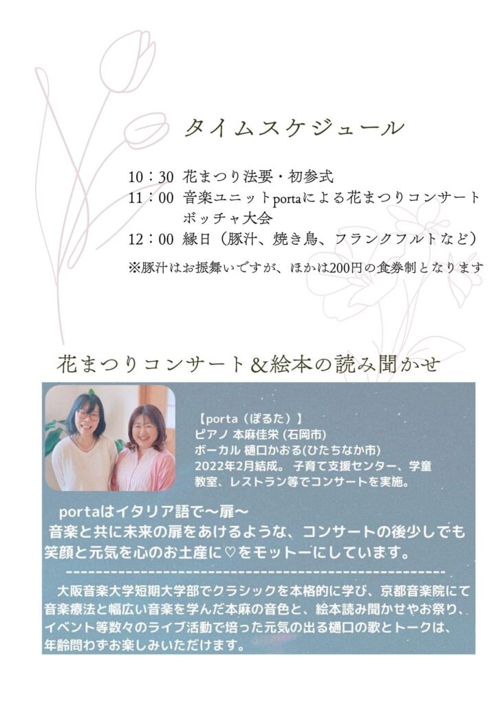 4月12日開催 花まつり法要並びに縁日のご案内